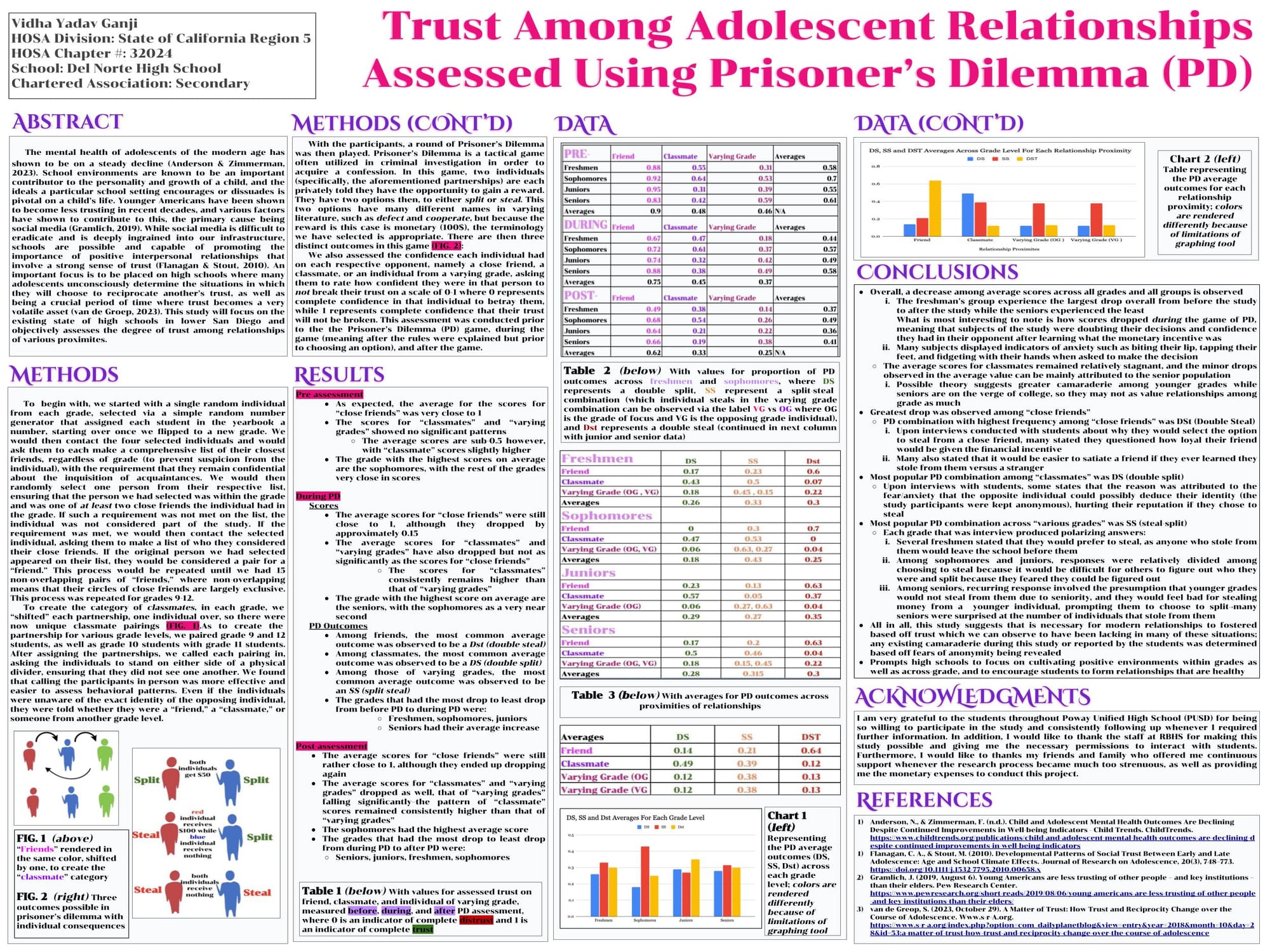 This event was scheduled to survey the Trust Among Adolescent Relationships Assessed Using Prisoner’s Dilemma (PD)