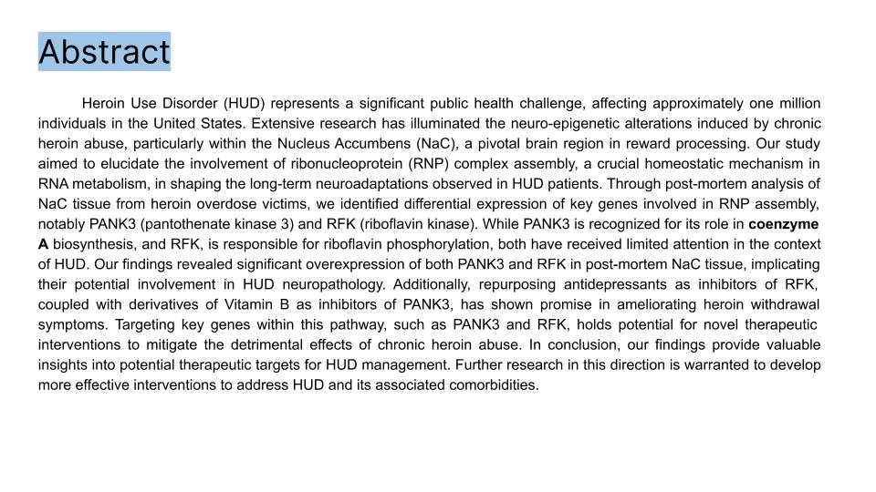 Targeting the Ribonucleoprotein Complex Assembly as Therapy for Heroin Use Disorder